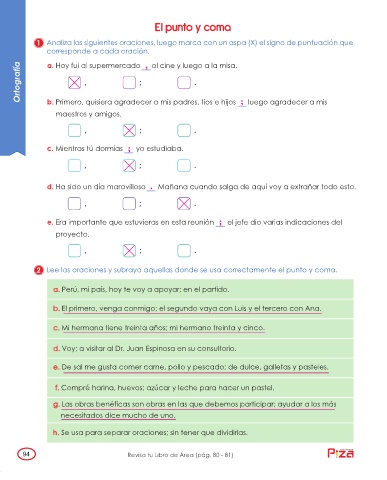 2 Lee las oraciones y subraya aquellas donde se usa correctamente el punto y coma.