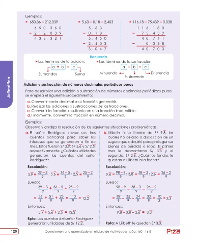 Aritmética Adición y sustracción de números decimales periódicos puros
