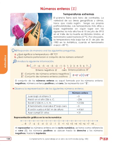 Observa la representación de los siguientes números enteros: