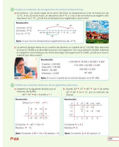Rpta: A esa hora la temperatura registrada fue de –4 °C.