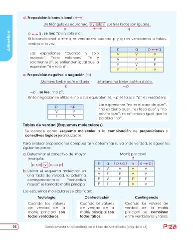 Aritmética El bicondicional p q es verdadero cuando p y q son verdaderos o falsos,