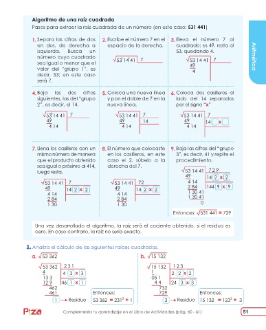 Pasos para extraer la raíz cuadrada de un número (en este caso: 531 441)