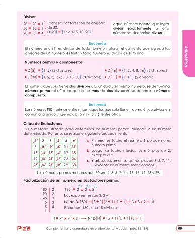 divisores de un número es finito y todo número es divisor de sí mismo. Aritmética
