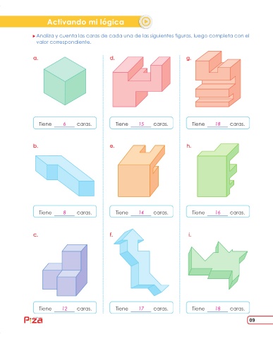 Analiza y cuenta las caras de cada una de las siguientes figuras, luego completa con el