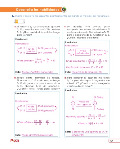 Rpta: Tengo 17 pelotas par vender. Rpta: El precio de la torta es S/ 58.