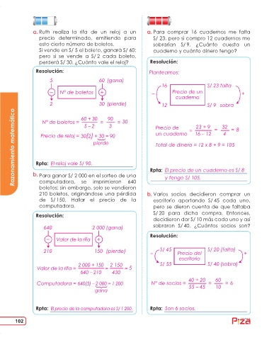 a. Ruth realiza la rifa de un reloj a un a. Para comprar 16 cuadernos me falta