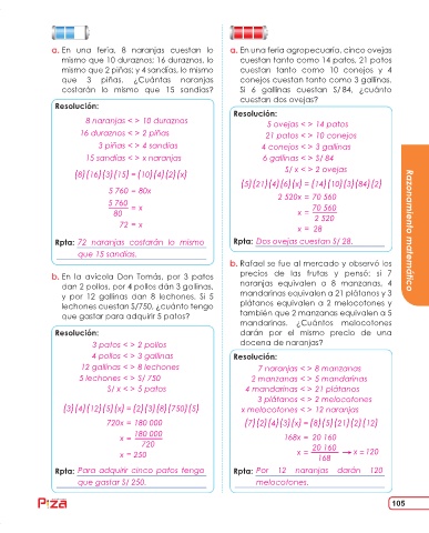 Rpta: 72 naranjas costarán lo mismo Rpta: Dos ovejas cuestan S/ 28.