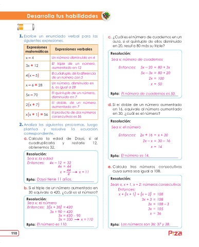 5x – 70 El quíntuple de un número, Rpta: El número de cuadernos es 50.