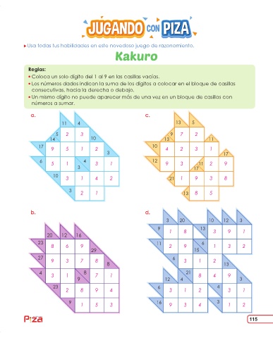 Los números dados indican la suma de los dígitos a colocar en el bloque de casillas