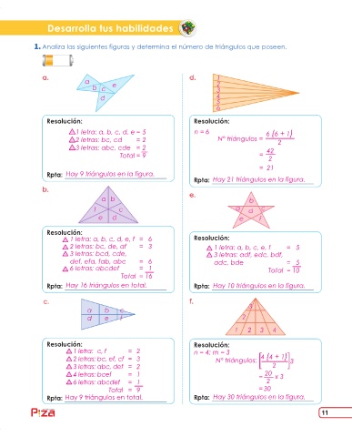 Rpta: Hay 16 triángulos en total. Rpta: Hay 10 triángulos en la figura.