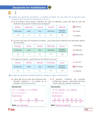 Analiza los siguientes problemas, completa la tabla con los días de la semana que