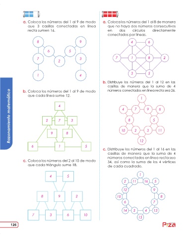 a. Coloca los números del 1 al 9 de modo a. Coloca los números del 1 al 8 de manera