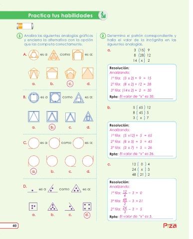 Analiza las siguientes analogías gráficas Determina el patrón correspondiente y