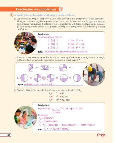 b. Paolo coloca losetas en el frontis de su casa, guiándose por la siguiente analogía