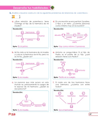 Analiza y resuelve cada uno de los siguientes problemas de relaciones de parentesco.