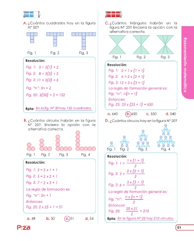 Rpta: En la fig. N° 50 hay 152 cuadrados.