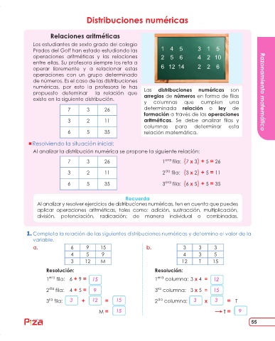 Completa la relación de las siguientes distribuciones numéricas y determina el valor de la