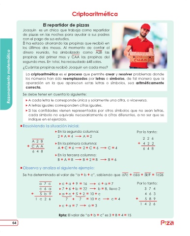 c6a 7 + 6 + b = 22 b = 8, llevo 2 374