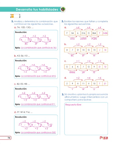 Analiza y determina la combinación que Escribe las razones que faltan y completa