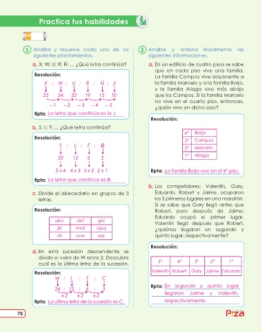 a. X; W; U; R; Ñ; ... ¿Qué letra continúa? a. En un edificio de cuatro pisos se sabe