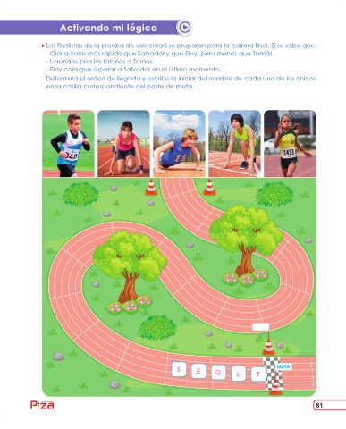 Determina el orden de llegada y escribe la inicial del nombre de cada uno de los chicos