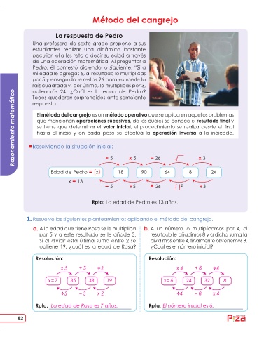 Resuelve los siguientes planteamientos aplicando el método del cangrejo.