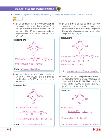 Analiza los siguientes planteamientos y resuelve aplicando el método del rombo