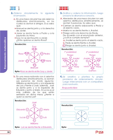 b. En una mesa redonda con 6 asientos Sé creativo y plantea tu propio