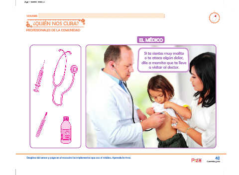 Desglosa del anexo y pega en el recuadro los implementos que usa el médico. Aprende la rima. 46