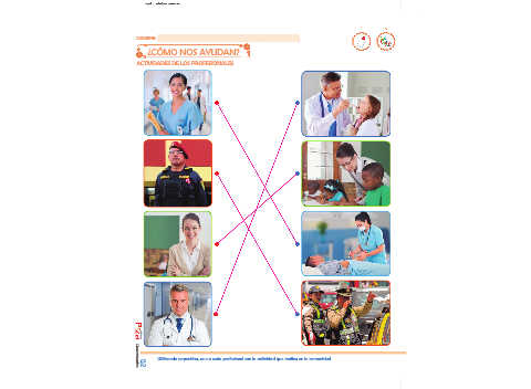 Utilizando serpentina, une a cada profesional con la actividad que realiza en la comunidad.