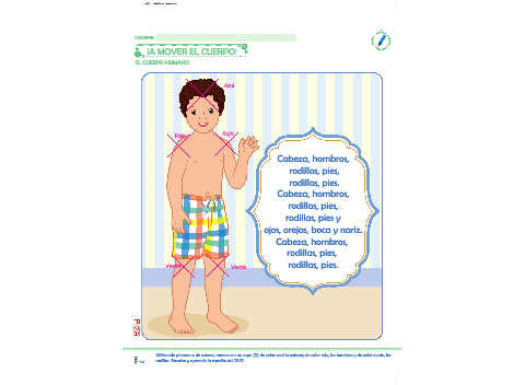 Utilizando plumones de colores, marca con un aspa (X) de color azul la cabeza; de color rojo, los hombros y de color verde, las