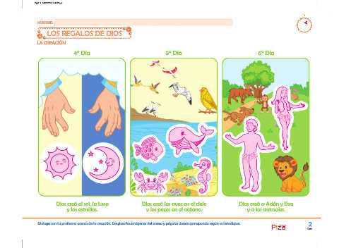Dialoga con tu profesora acerca de la creación. Desglosa las imágenes del anexo y pégalas donde corresponda según se te indique. 2