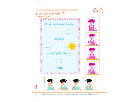 Dialoga con tu profesora sobre la señal de la cruz. Luego recorta y pega las imágenes según te indique tu profesora.