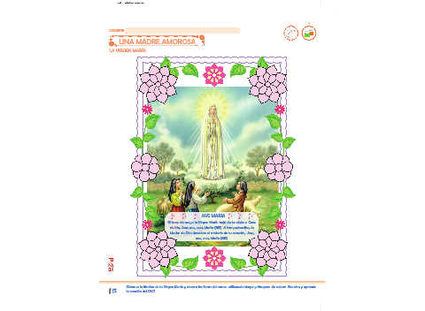 Observa la lámina de la Virgen María y decora las flores del marco utilizando hisopo y témpera de colores. Escucha y aprende
