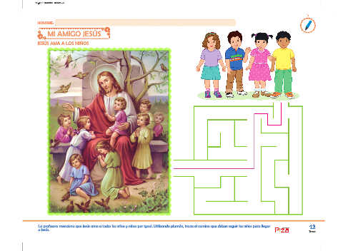 La profesora menciona que Jesús ama a todos los niños y niñas por igual. Utilizando plumón, traza el camino que deben seguir los niños para llegar ediciones 13