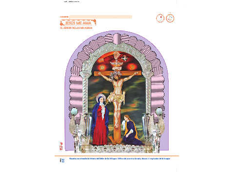 Escucha con atención la historia del Señor de los Milagros. Utilizando escarcha dorada, decora el resplandor de la imagen.