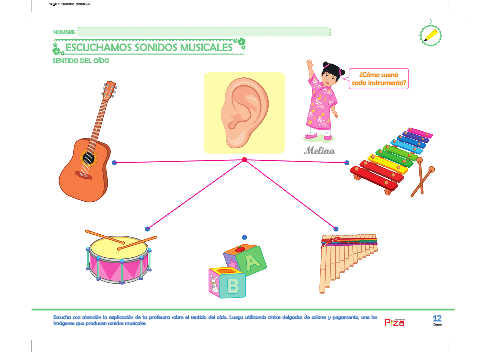 Escucha con atención la explicación de tu profesora sobre el sentido del oído. Luego utilizando cintas delgadas de colores y pegamento, une las ediciones 12