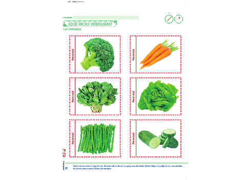 Conversamos sobre la importancia de consumir verduras. Luego punza alrededor de las imágenes y pégalas en una cartulina