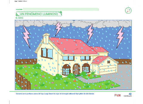 Comenta con tu profesora acerca del rayo. Luego decora los rayos de la imagen utilizando lápiz glitter de color dorado. 46