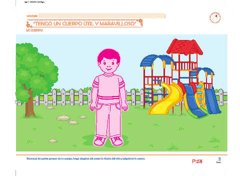 Reconoce las partes gruesas de tu cuerpo, luego desglosa del anexo la silueta del niño y pégala en la escena. 5