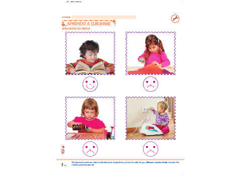 Dialoga con tu profesora sobre las situaciones de riesgo dentro y fuera del aula. Luego, utilizando crayolas dibuja una cara feliz