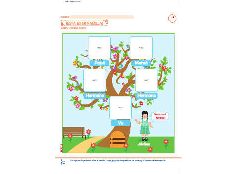 Dialoga con tu profesora sobre la familia. Luego, pega las fotografías de tus padres y la tuya donde corresponda.
