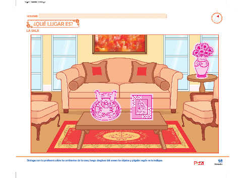 Dialoga con tu profesora sobre los ambientes de la casa, luego desglosa del anexo los objetos y pégalos según se te indique. 18