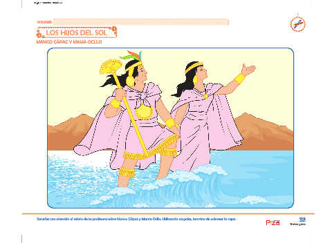 Escucha con atención el relato de tu profesora sobre Manco Cápac y Mama Ocllo. Utilizando crayolas, termina de colorear la ropa. 33