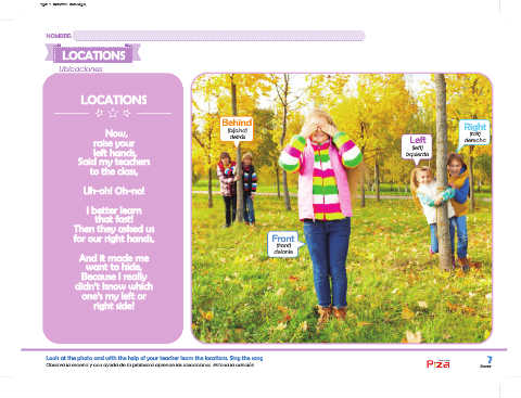 Observa la escena y con ayuda de tu profesora aprende las ubicaciones. Entona la canción. Seven