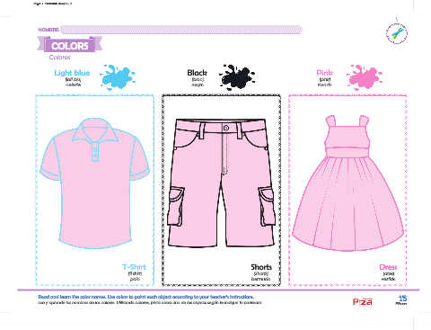 Lee y aprende los nombres de los colores. Utilizando colores, pinta cada uno de los objetos según te indique tu profesora. Fifteen