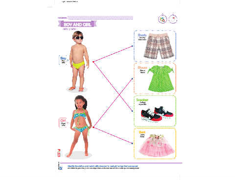 Identifica las prendas y une con serpentina cada una con el niño o niña que le corresponde.