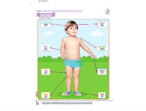 Use a marker to match the labels to the part of the body. Learn the names of our body parts.