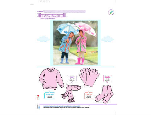 Paint the clothes with color pencils. Learn the name of the clothes.