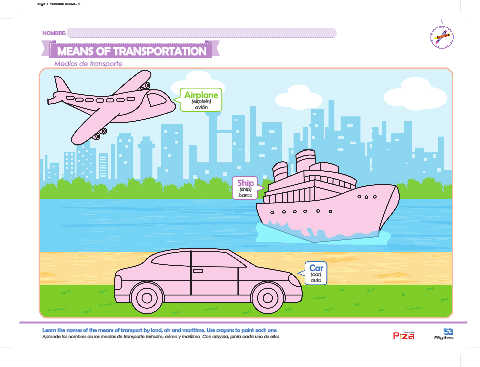 Aprende los nombres de los medios de transporte terrestre, aéreo y marítimo. Con crayola, pinta cada uno de ellos. Fifty three